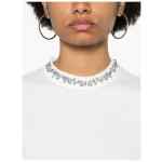 white cotton jersey texture crew neck rhinestone embellishment short sleeves logo patch to the rear straight hem Embroidered cotton t-shirt