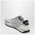 Golden Goose Deluxe Brand sneakers with silver ripstop nylon upper, featuring a black side star patch, black laminated nappa leather heel tab with 3D stabilizer, silver laminated nappa toe, silver lurex laces, and rubber sole.
