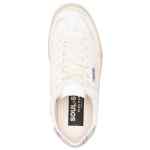 white leather glitter detailing logo tag gold-tone logo lettering round toe front lace-up fastening contrasting branded heel counter branded insole flat rubber sole Soul-Star leather sneakers
