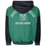 forest green front zip fastening two side flap pockets stripe trim slouchy drawstring hood Organic cotton reversbile hoodie