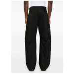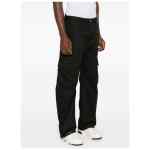 black twill weave concealed fly and button fastening mid-rise belt loops two side slash pockets two side patch pockets two side cargo pockets dart detailing appliqué logo two rear patch pockets adjustable straight hem tapered leg Cotton cargo trousers