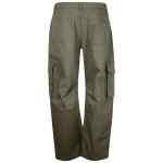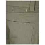 olive green wide leg cargo style six front pockets two back pockets double gold star on the back. Cotton cargo trousers