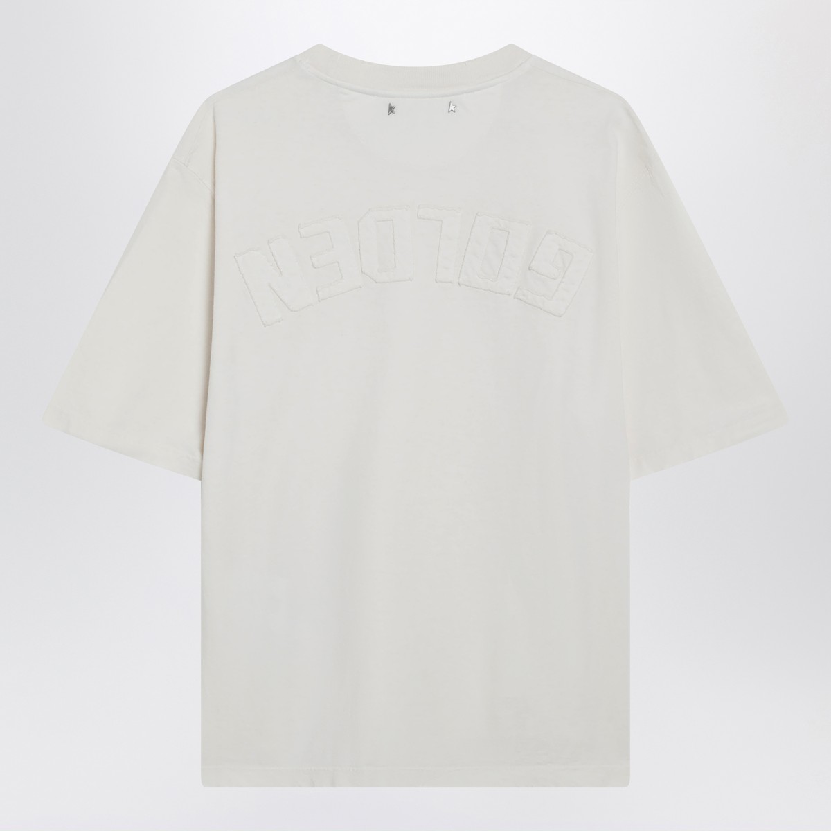 Golden Goose Deluxe Brand white cotton T-shirt with vintage effect, featuring short sleeves, ribbed crew neck, double star logo on the back, reversed tone-on-tone lettering logo on the back and relaxed fit.