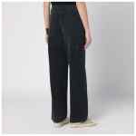 Wide pants by Golden Goose Deluxe Brand in black cotton denim, featuring a front zip and button closure, belt loops, five classic pockets, stud details, and a double star logo on the back.