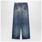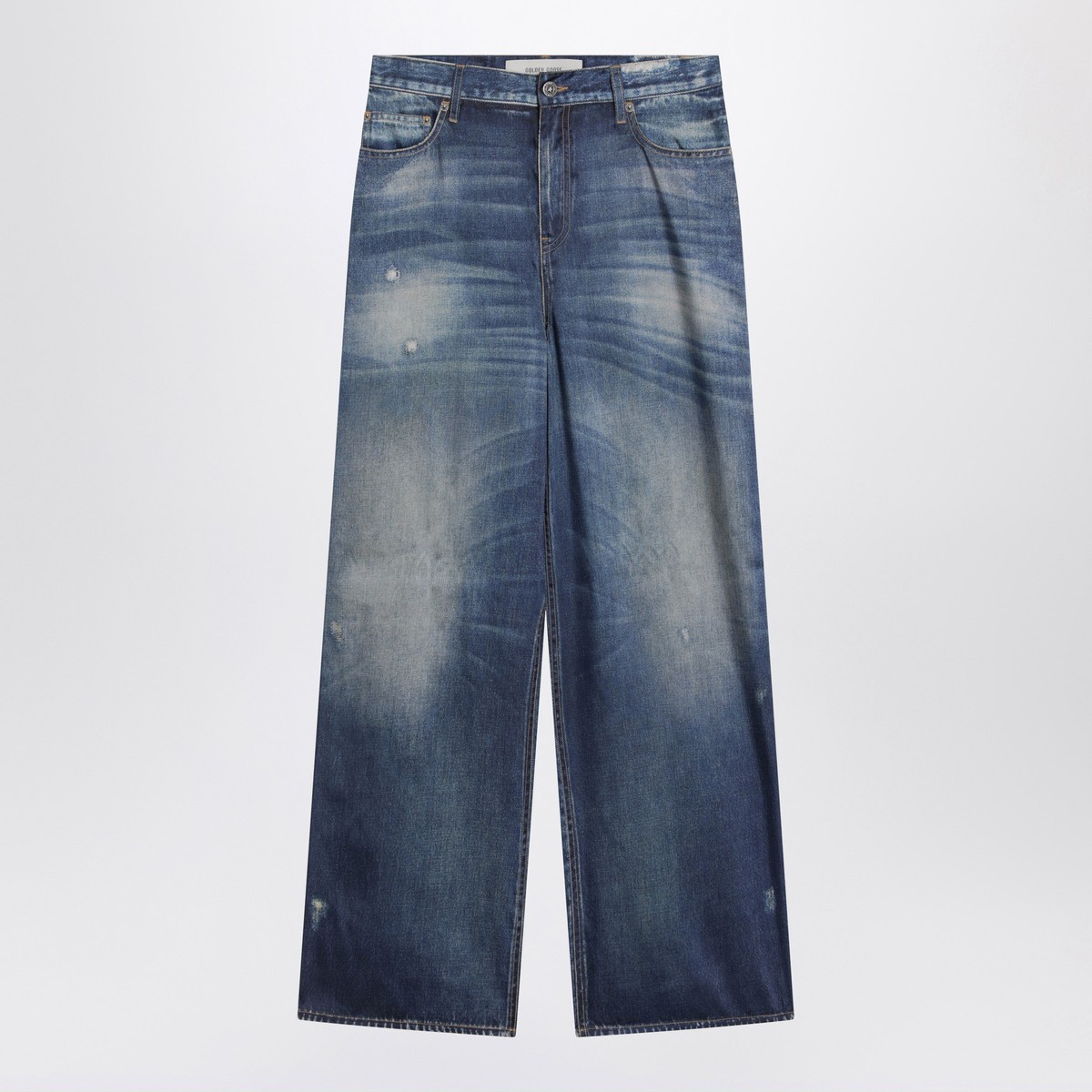 Golden Goose Deluxe Brand trousers in blue fabric with worn denim print, featuring wide-leg design, belt loops, zip and button closure, five-pocket design and double star on the back.