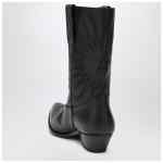 Golden Goose Deluxe Brand black leather boots with vintage treatment, characterized by pointed design, low shaft, inlaid star, black stitching embroidery on the shaft, detail with black piping, gold-colored metal plate with engraved logo signature on the heel and rubber sole.