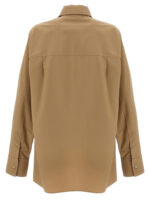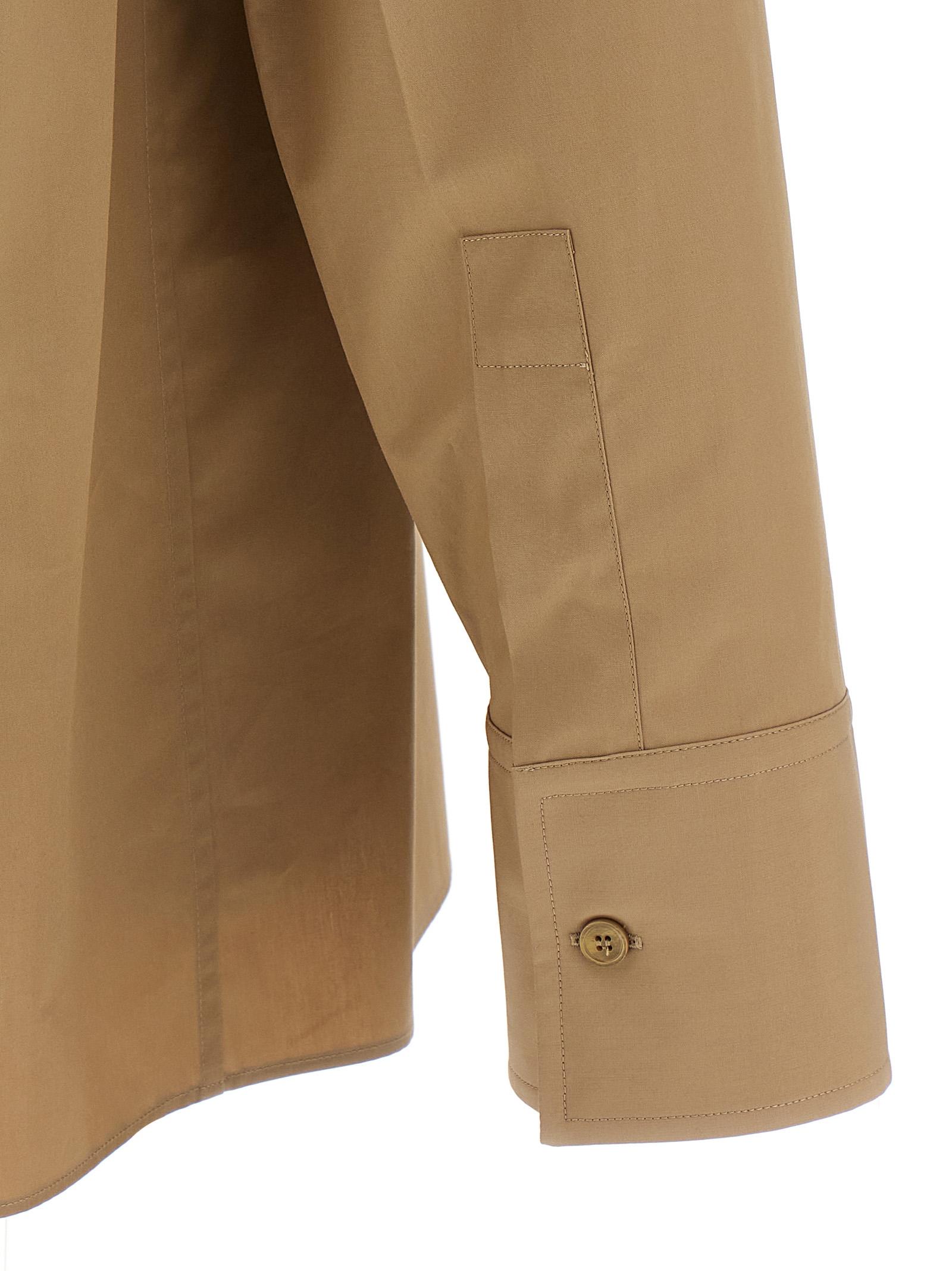 Cotton poplin shirt with embossed front logo, Button closure, Long cuffed sleeves and dropped shoulders. Size and Fit – true to size fit