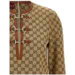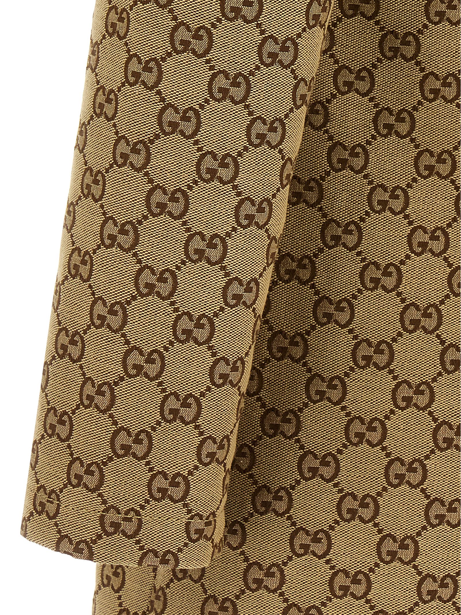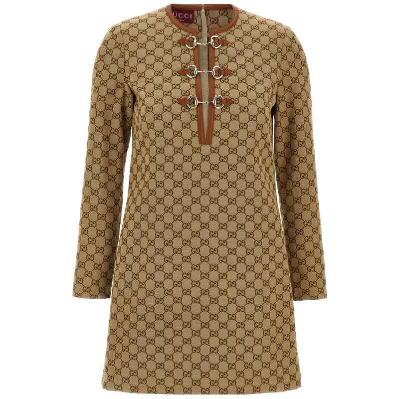 ‘gg’ jacquard fabric mini dress, V-neck with metal clamps, Back zip and hook closure, Long sleeves. Size and Fit – True to size fit
