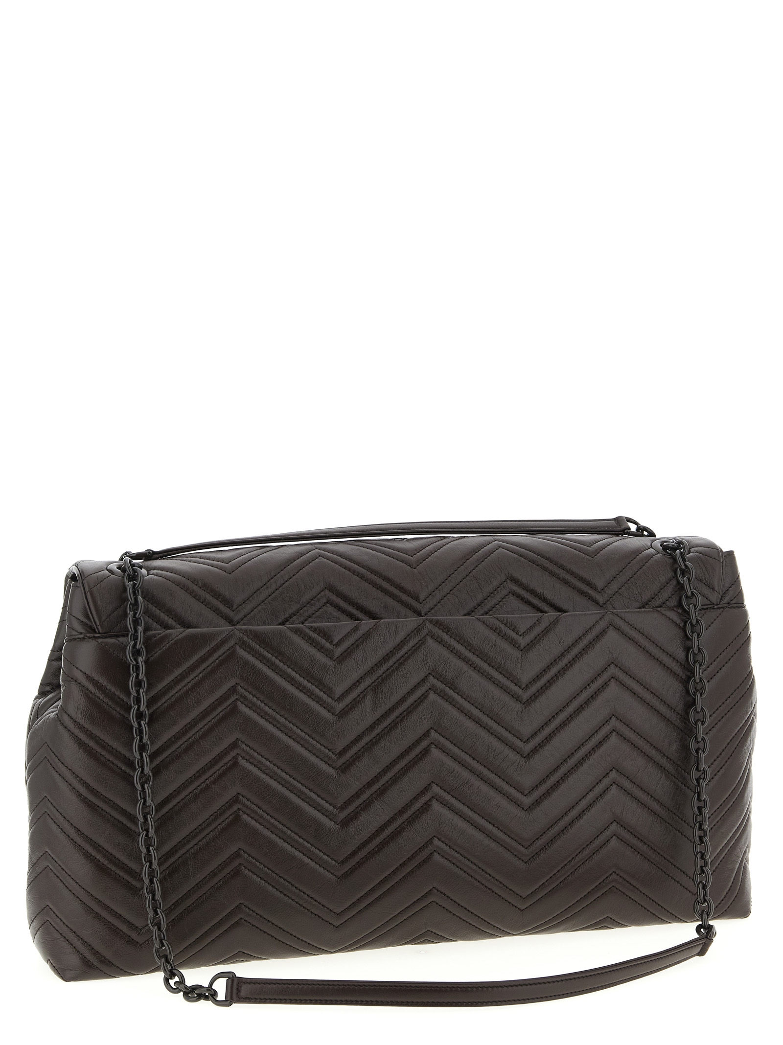 ‘gg marmont’ large shoulder bag in quilted matelassé leather with chevron pattern, Sliding enameled chain shoulder strap with leather handles. Size and Fit – W 37.5 x H 21 x D 9 cm
