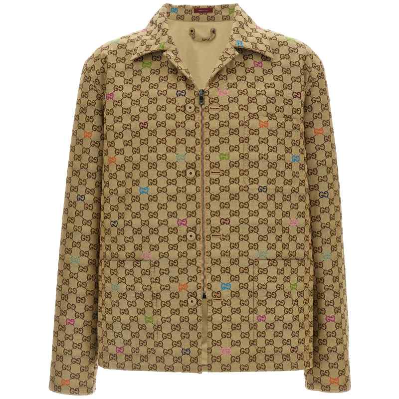 Gg fabric jacket with gg pattern in all-over multicolor fil coupé, Collar, Zip and button closure, Pockets, Long sleeves with cuffs. Size and Fit – True to size fit