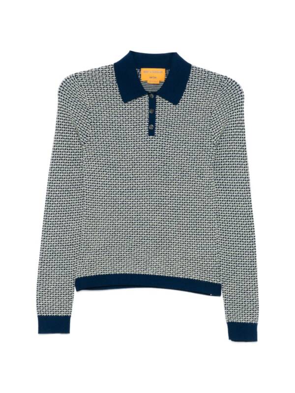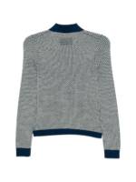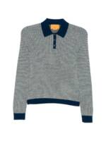 blue and beige waffle knit button fastening collar long sleeves knitted Pique cashmere polo shirt.