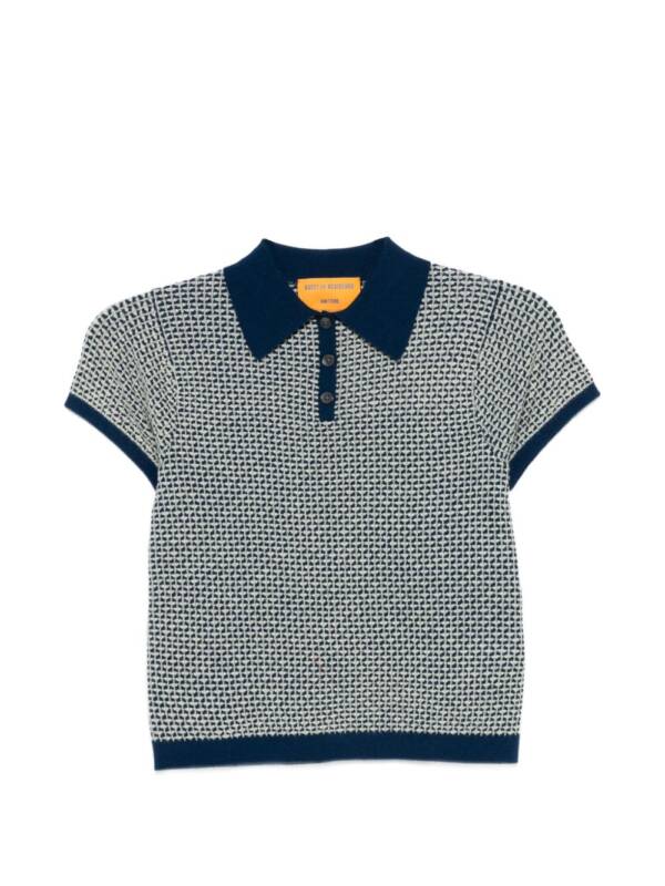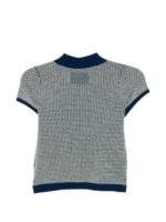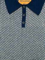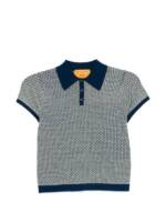 blue and beige knit texture short sleeves button closure polo collar contrast trim Pique cashmere polo shirt. Size and Fit –  .