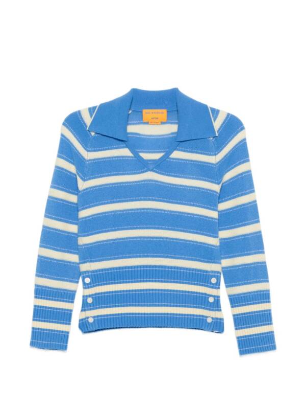 clear blue striped button detail polo collar long sleeves Port cashmere polo shirt. Size and Fit –  .