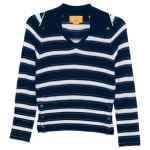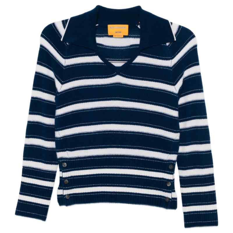 blue striped V-neck button detail collar long-sleeved Port cashmere polo shirt. Size and Fit –  .