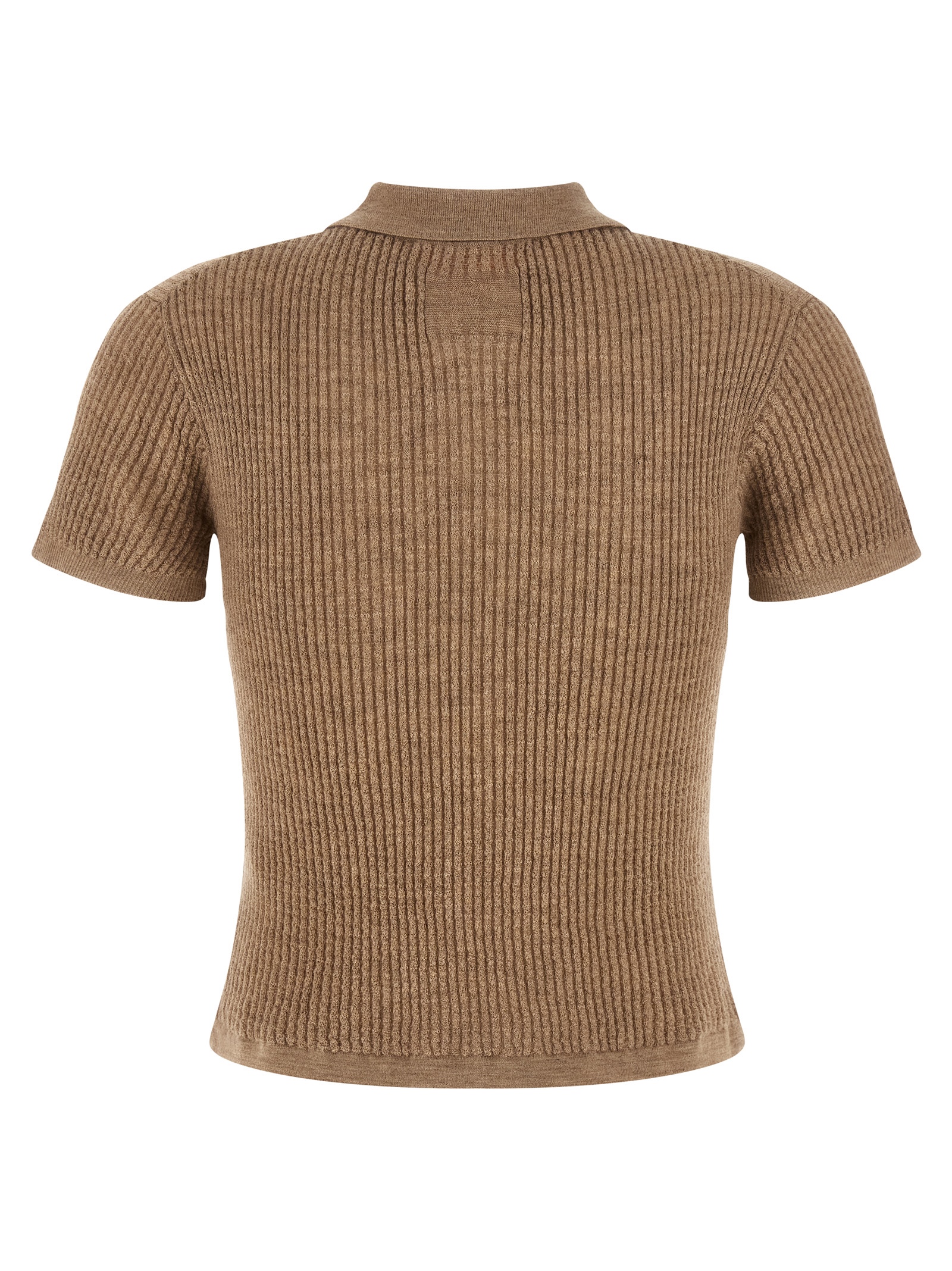 ‘shrunken’ extra light waffle cashmere polo shirt with collar and buttons, Short sleeves. Size and Fit – true to size fit