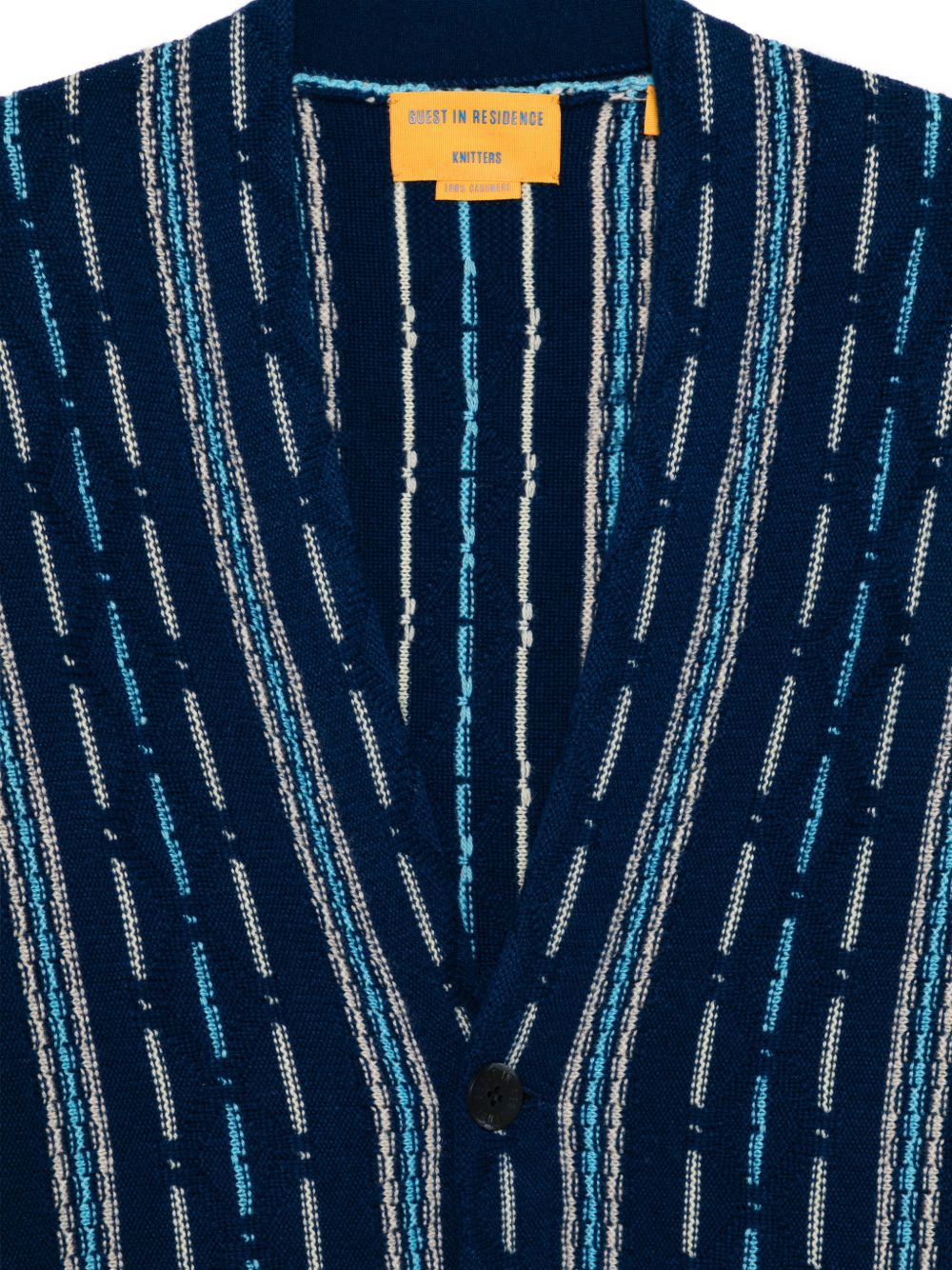 blue stripe pattern V-neck button fastening long sleeves Baja cashmere cardigan