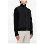 black virgin wool quilted ribbed knit panelled design high neck front press-stud and zip fastening contrasting-fabric sleeves ribbed cuffs and hem two side stud-fastening pockets straight hem full lining Nylon and wool bomber jacket
