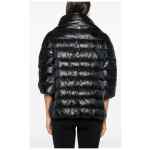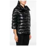 black down-feather filling padded design quilted stand-up collar three-quarter length sleeves two side inset pockets straight hem front press-stud fastening Aminta nylon cape