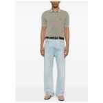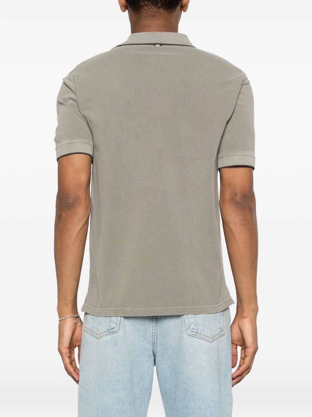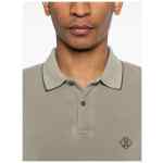 green button fastening black trim polo collar short sleeves logo embroidered Logo cotton polo shirt.