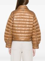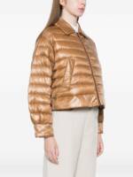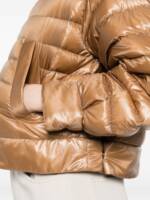 camel quilted pattern zip fastening pointed collar welt pockets long sleeves Nylon short down jacket. Size and Fit –  .