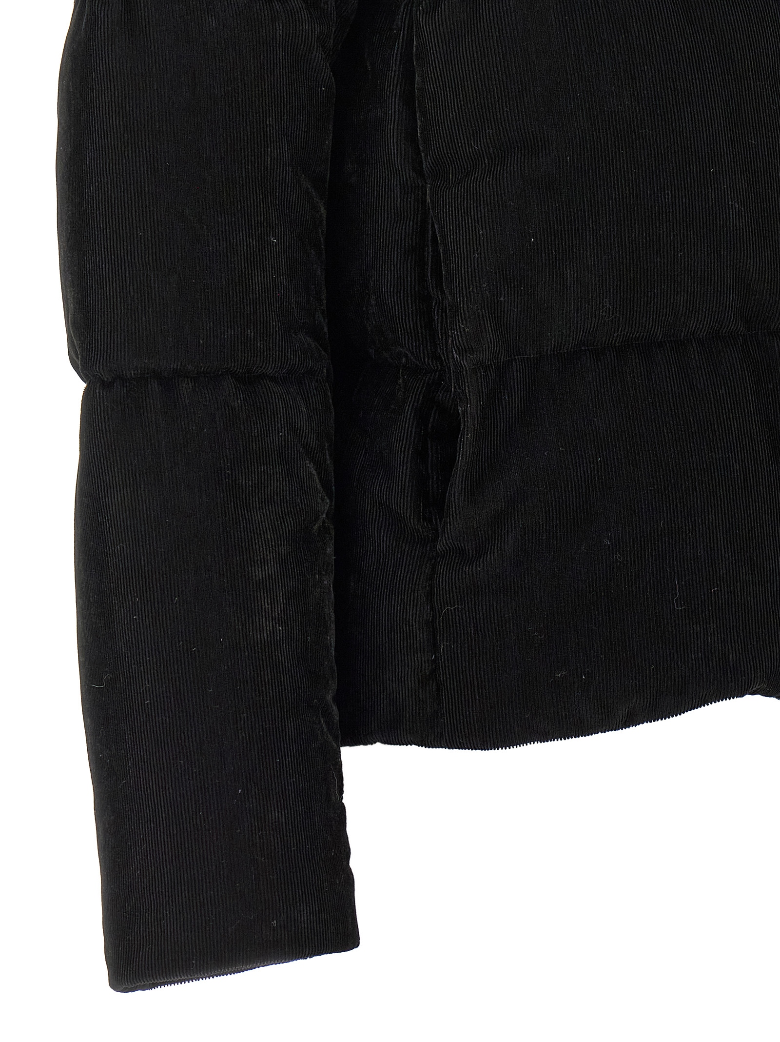 ‘resort – bright corduroy’ corduroy bomber jacket made of viscose blend and padded quilted lurex, Standing collar, Front zip closure, Pockets, Long sleeves, Drawstring at the hem. Size and Fit – Boxy fit