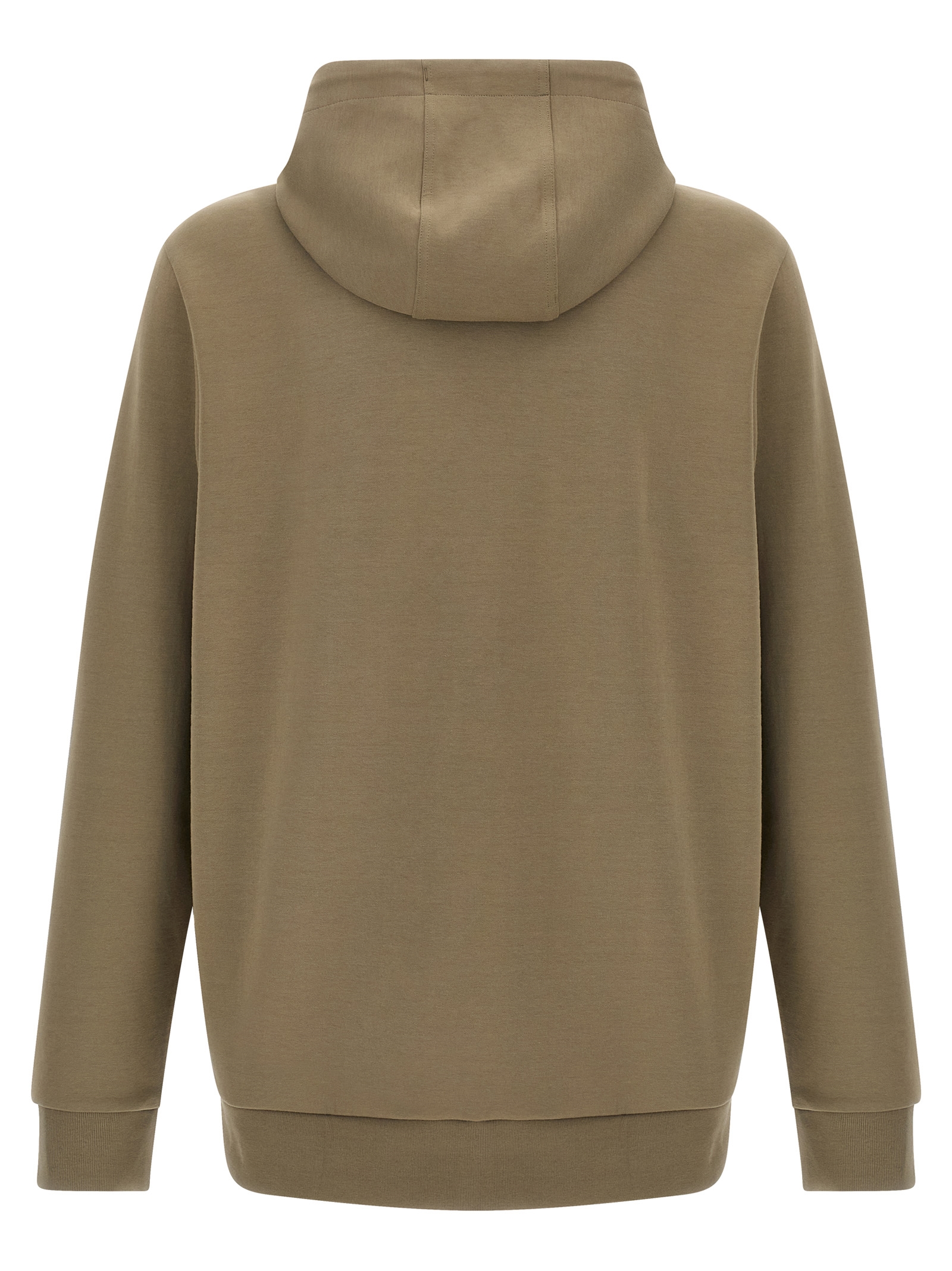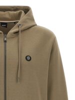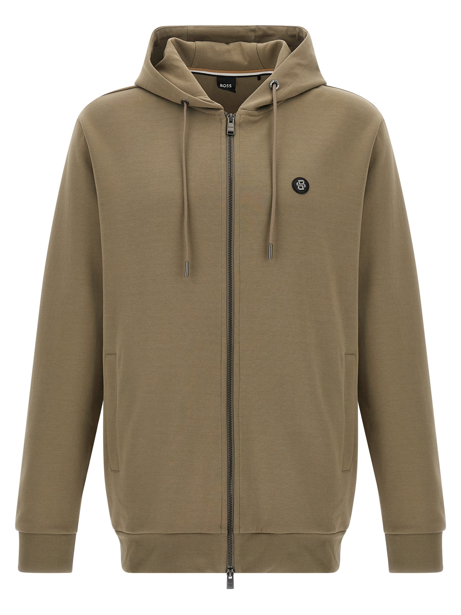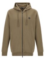 ‘c-spence 01’ cotton blend hoodie with leather patch with front metal logo, Zip closure, Pockets, Long cuffed sleeves. Size and Fit – true to size fit