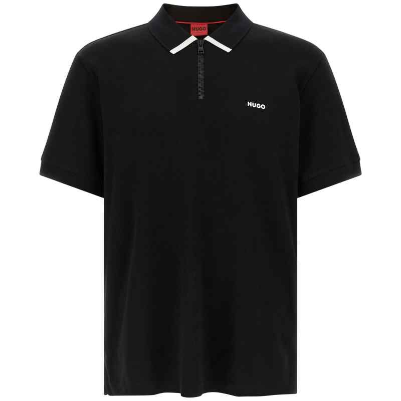 ‘dalomino’ stretch cotton jersey polo shirt with front logo print, Knit collar with contrast detail and half zip, Short sleeves with cuffs, Side slits. Size and Fit – true to size fit