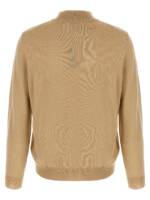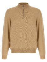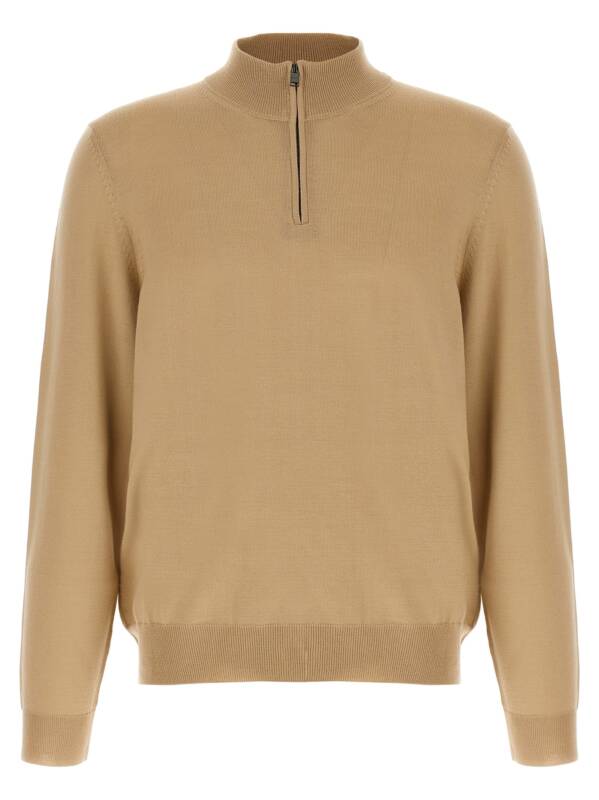 Virgin wool ‘ebenji’ sweater with half zip, Long cuffed sleeves.