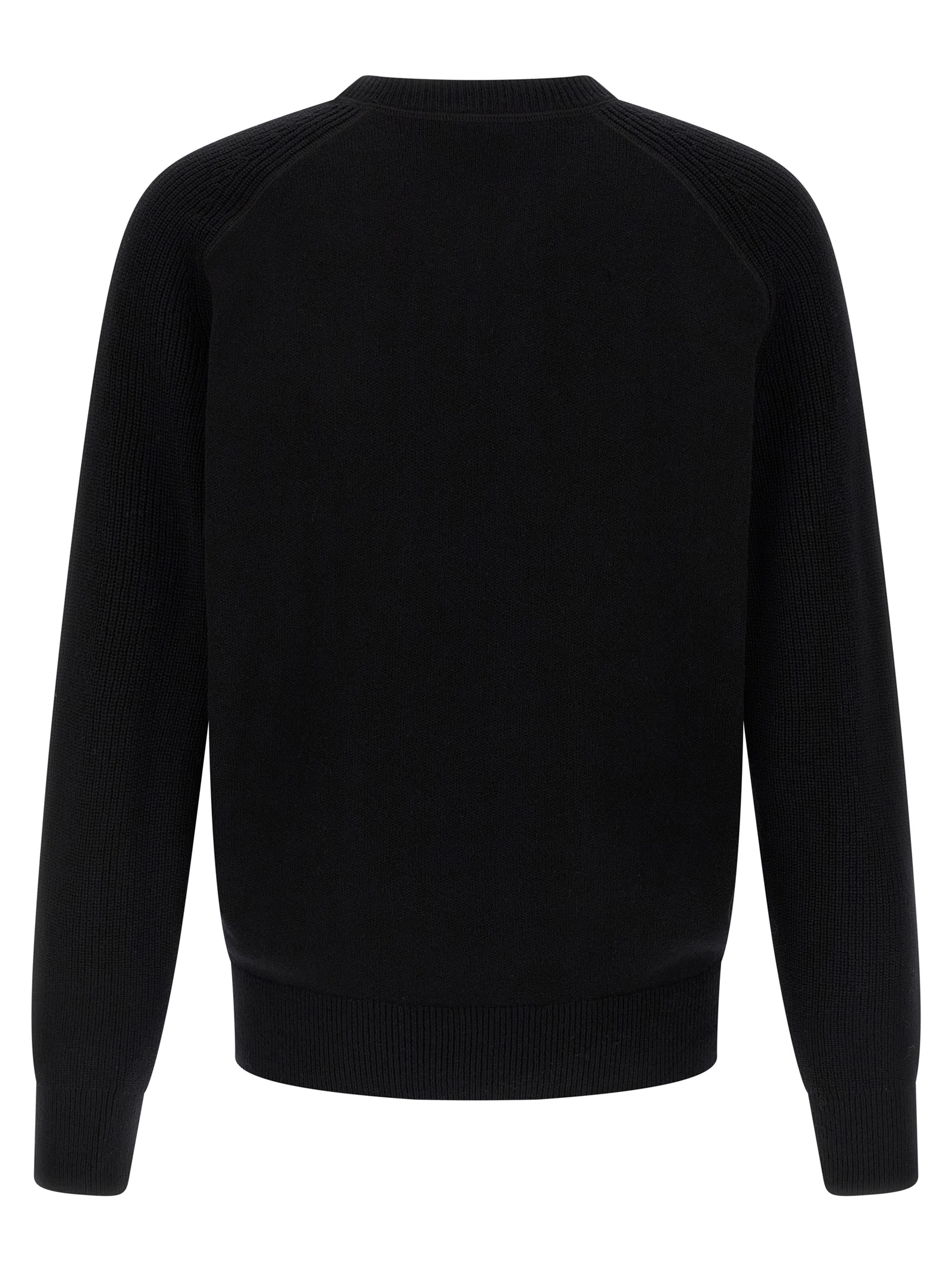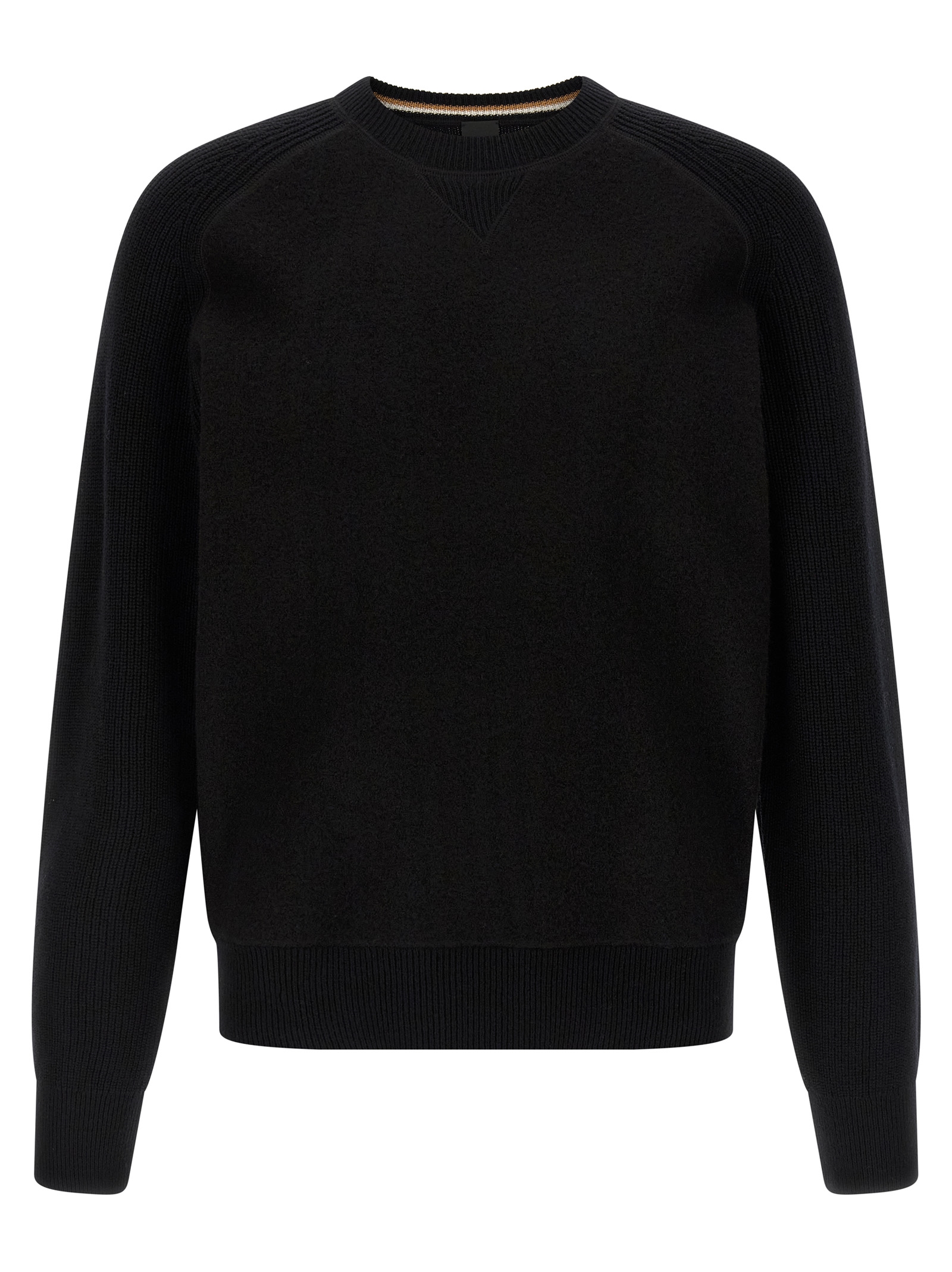 Virgin wool ‘h-hero’ sweater with carded front and knitted sleeves, Crew neck, Long raglan sleeves with cuffs, Band on the hem. Size and Fit – true to size fit