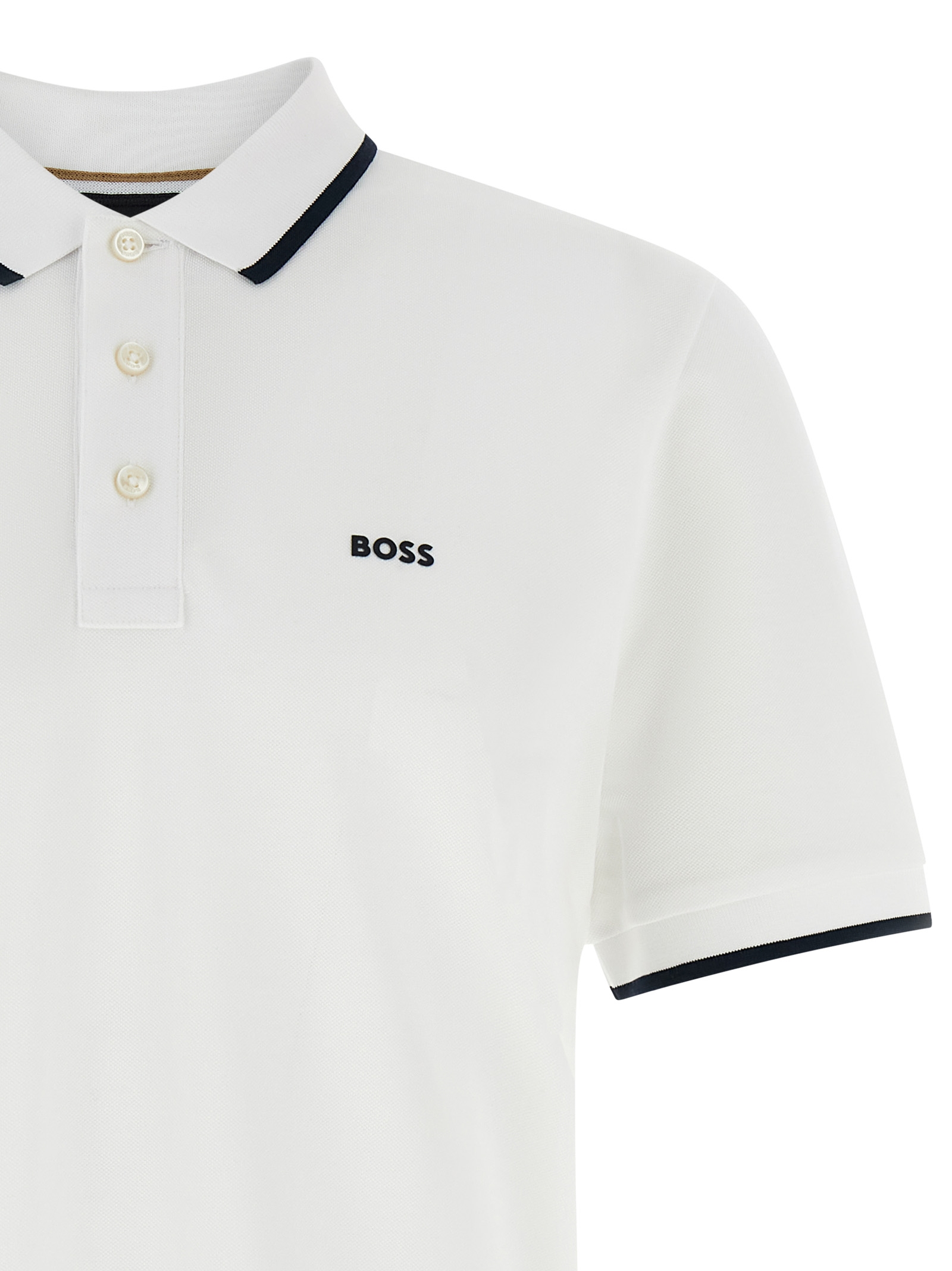 ‘parlay 190’ cotton piqué polo shirt with rubber logo appliqué on the front, Collar and buttons, Short sleeves.
