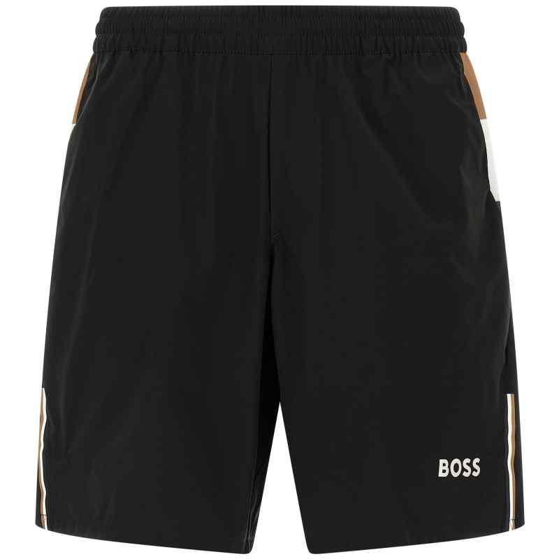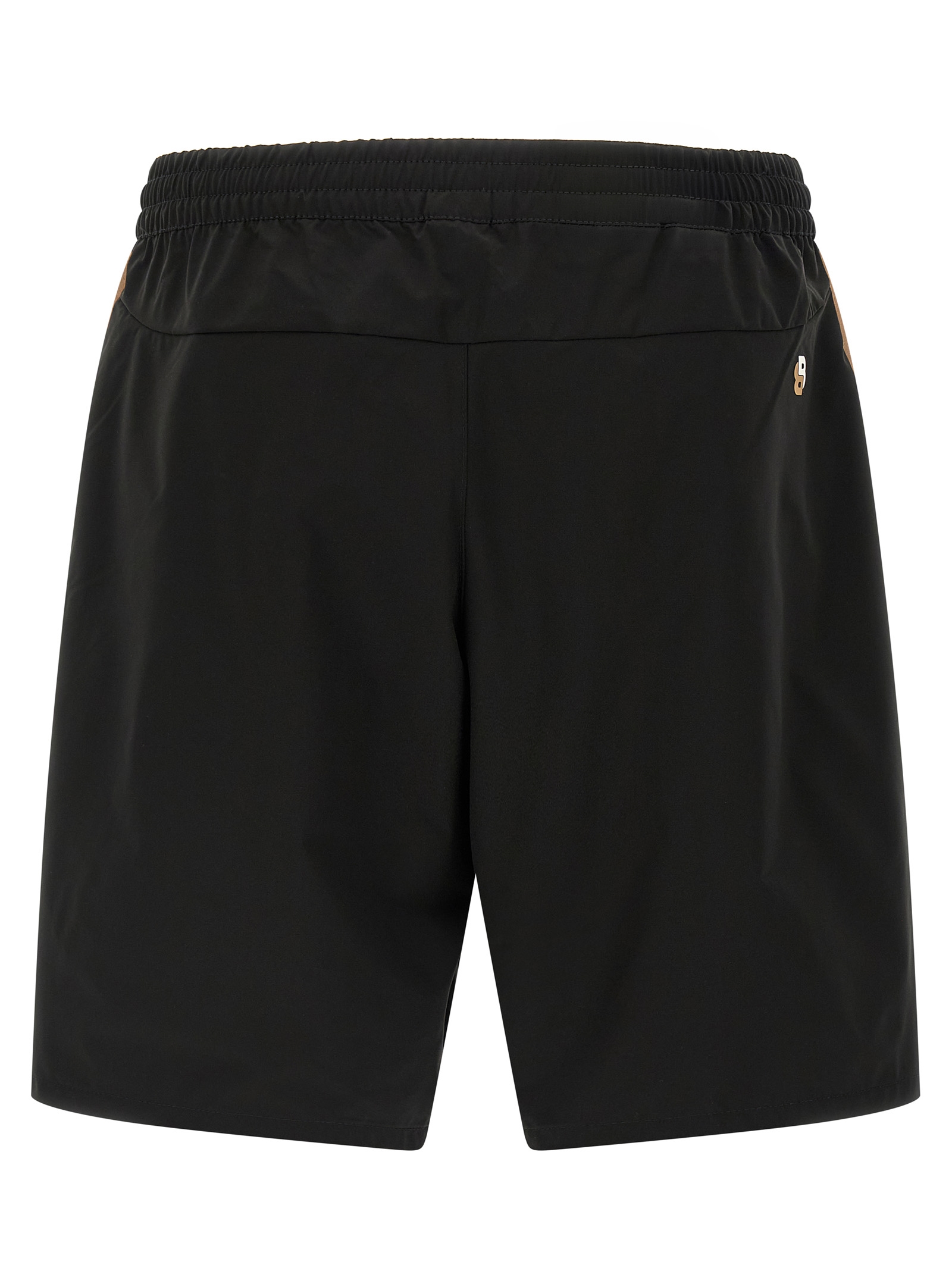 ‘t-match 9’ quick-drying tech fabric tennis bermuda shorts with moisture management, Logo print on the front and back, Inner athleisure seams, Drawstring elastic waistband, Large mesh pockets, Side slits at the hem. Size and Fit – True to size fit