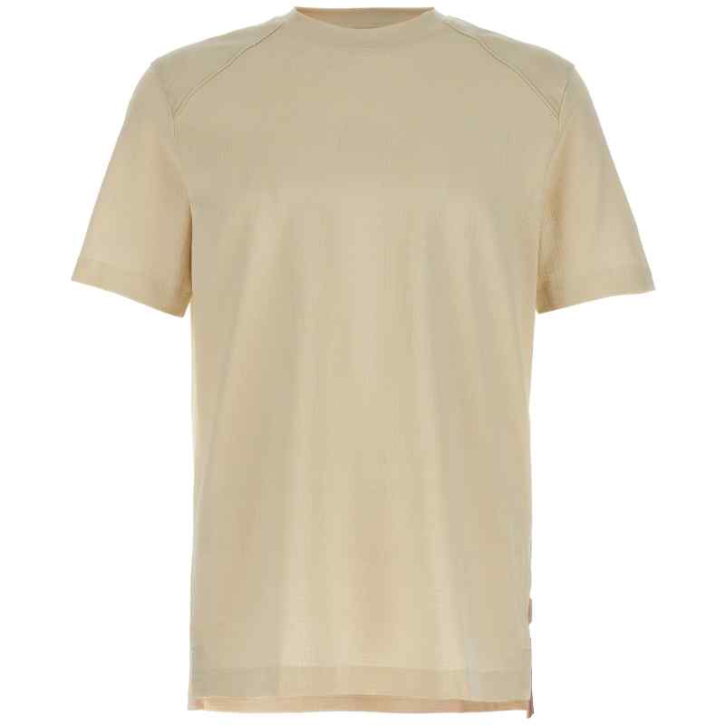 ‘thompson 207’ honeycomb stretch cotton t-shirt, Crew neck, Short sleeves, Side splits. Size and Fit – Comfort fit