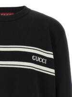 Cotton and silk sweater with contrast ‘intarsio gucci’ on the front, Round neckline, Long cuffed sleeves and slightly dropped shoulders. Size and Fit – true to size fit