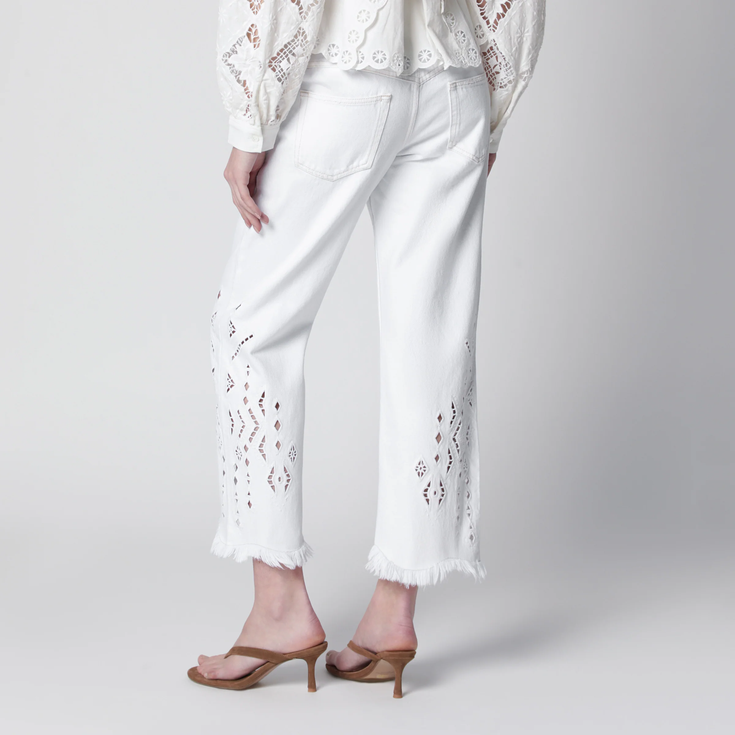 ISABEL MARANT Alison kick flare cropped jeans in white cotton