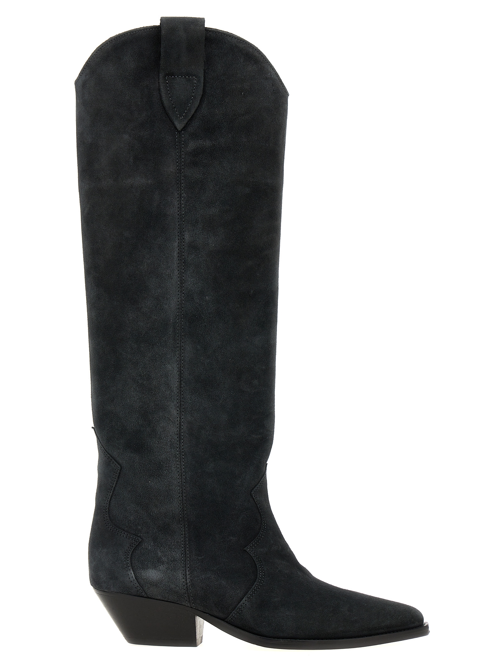 ‘denvee’ suede boots, Texan model with laminated cuban heel.
