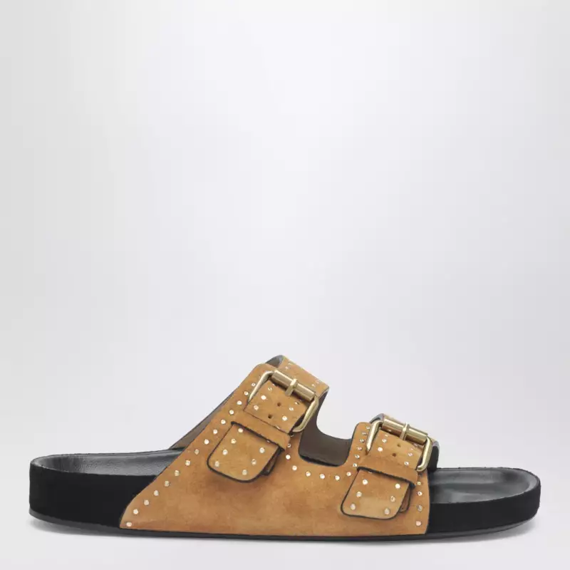 Sandals by Isabel Marant in hazelnut suede leather Double buckle closure Stud embellishment Rubber sole.