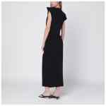 Isabel Marant long black cotton jersey dress featuring boat neckline, removable shoulder tabs with snap buttons, short sleeves, front pleating and slit, and long fitted cut.