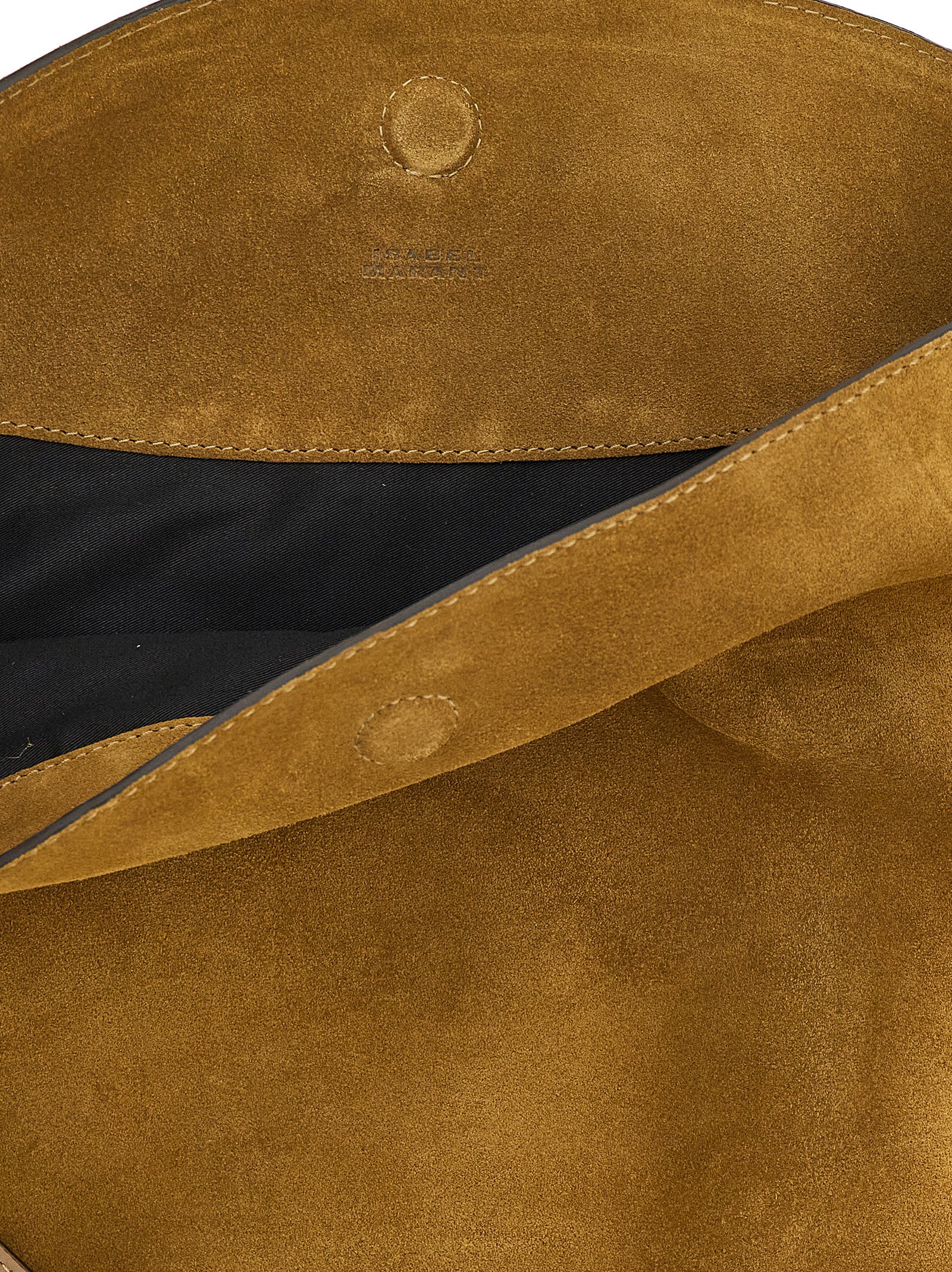 Oskan hobo soft suede shoulder bag with stud appliqué, Magnetic closure, Fixed handle, And removable clutch.