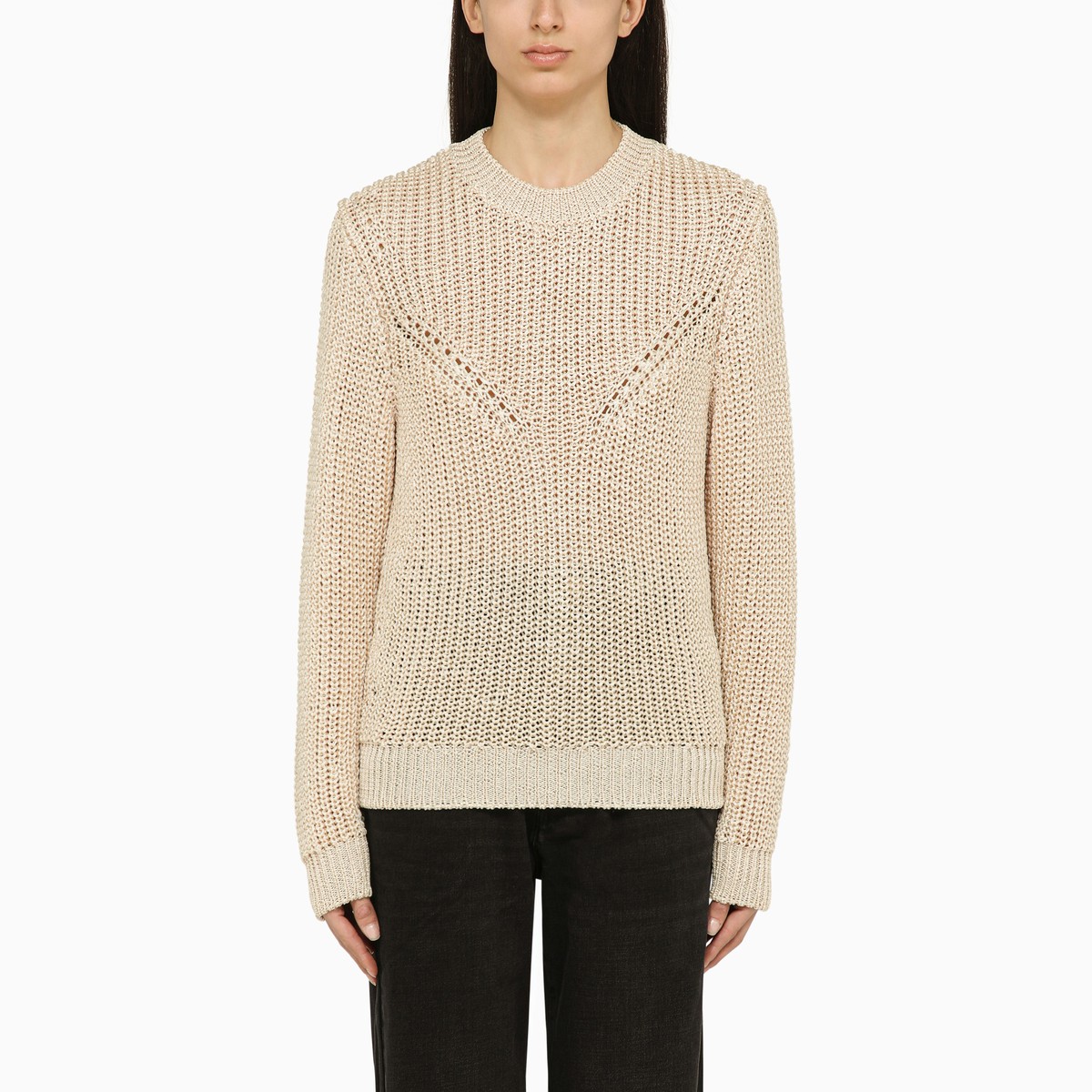 Ecru-coloured recycled polyester crew-neck sweater from Isabel Marant featuring long sleeves, a perforated design and a ribbed collar, cuffs and hem.