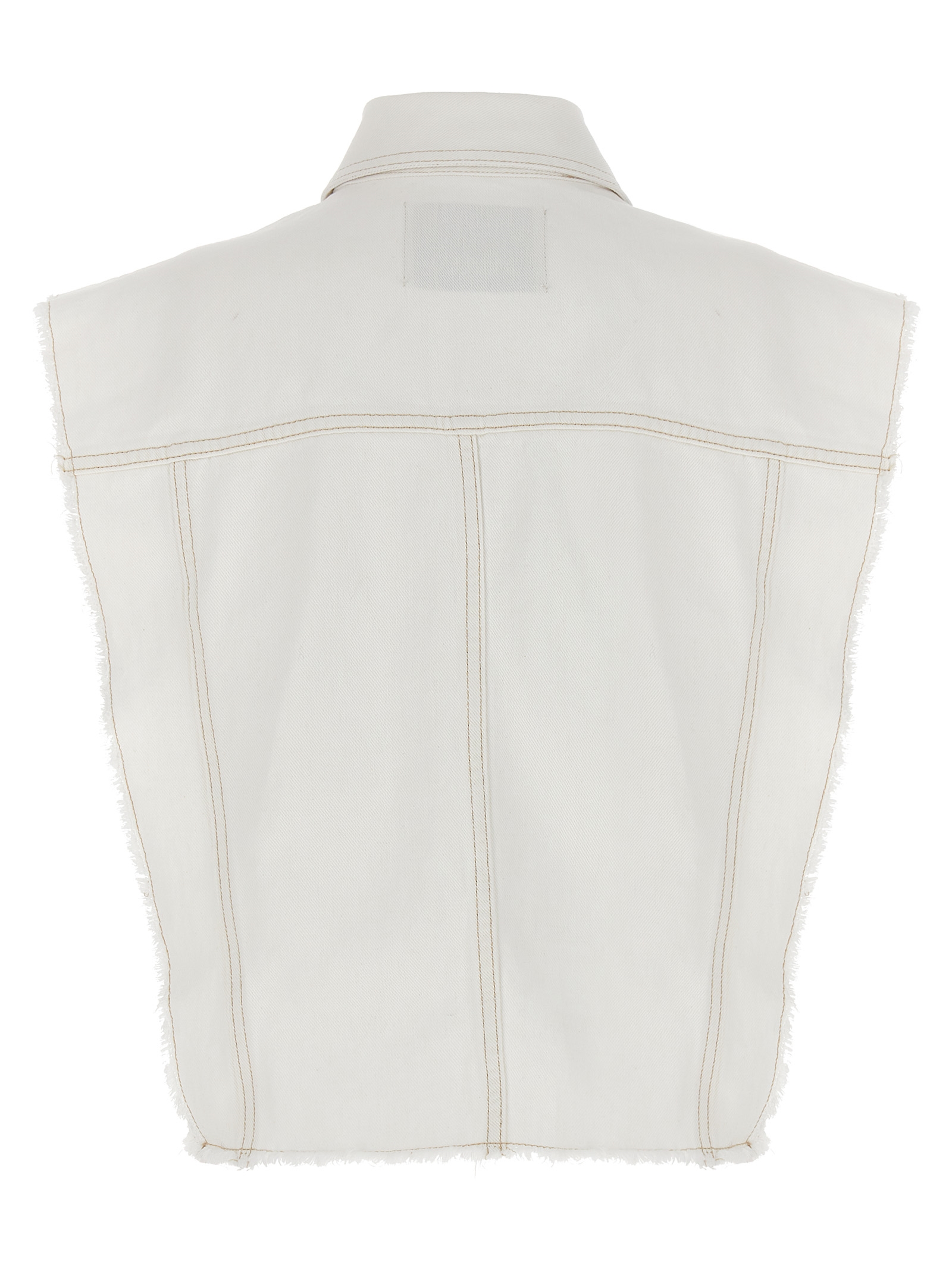 ‘Tyra’ vest in cotton denim with frayed details, button closure, pockets.
