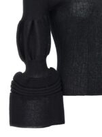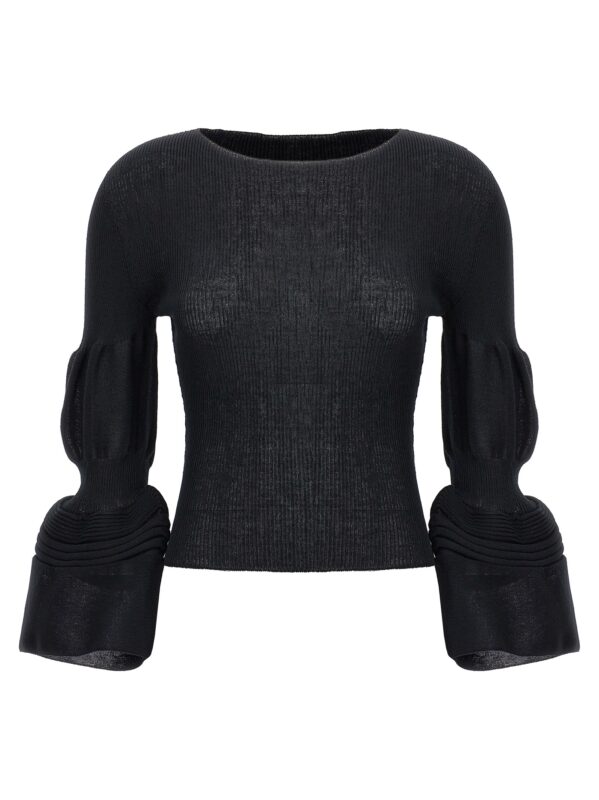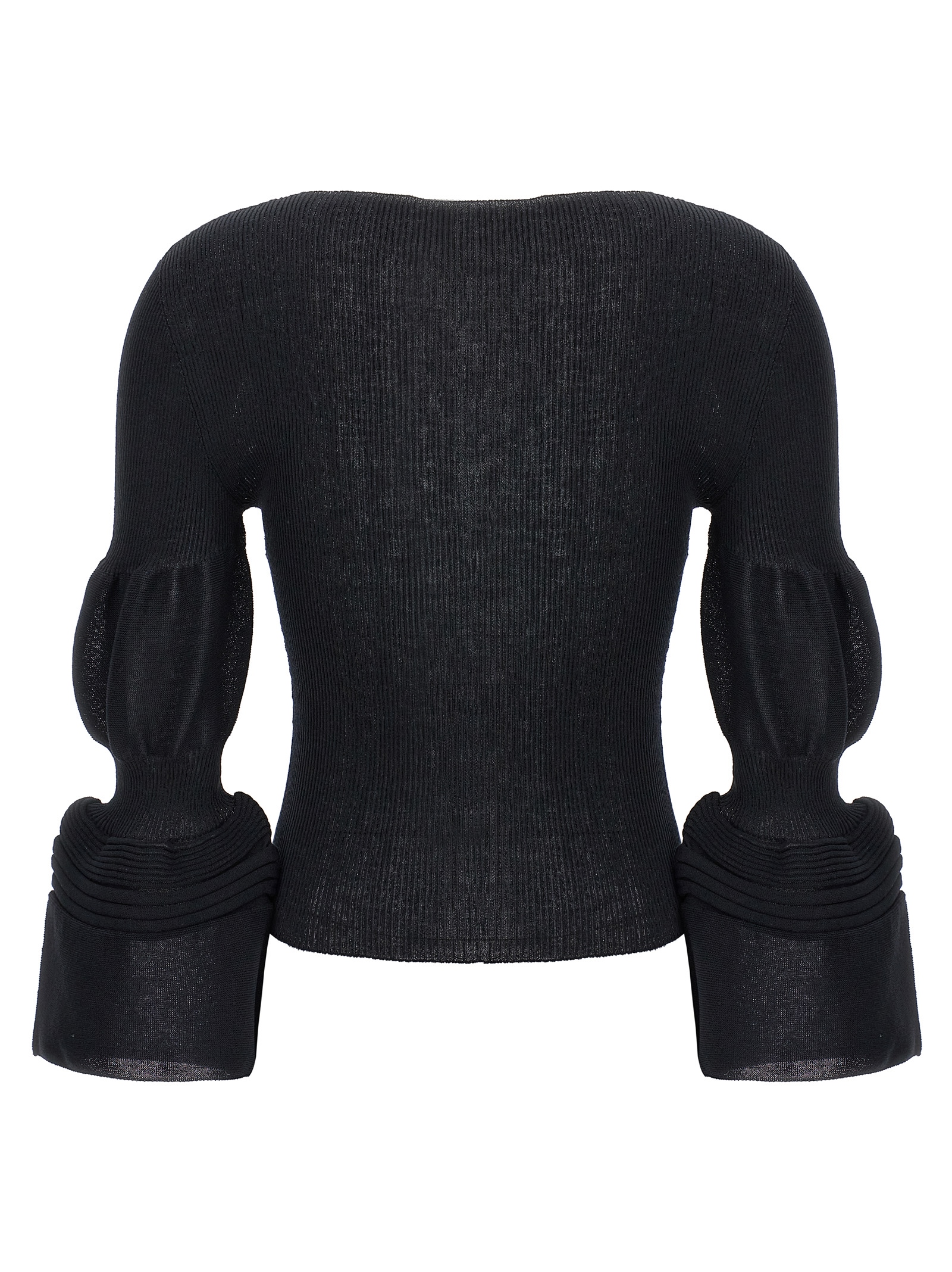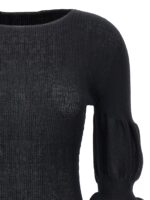 ‘assemblage branch’ ramie blend knit top with long puff sleeves. Round neck. Size and Fit – True to size fit