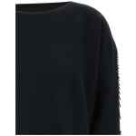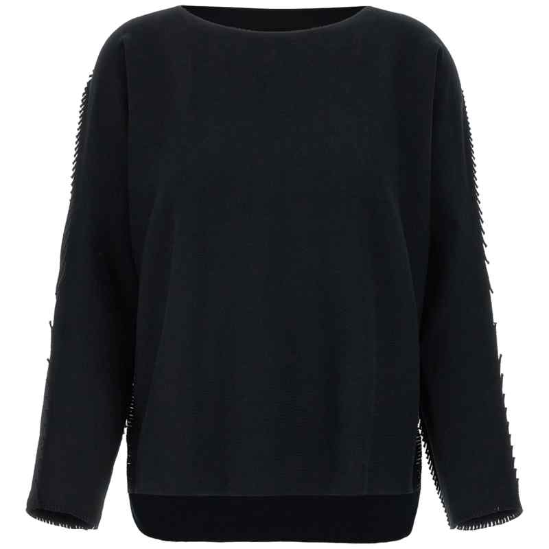 ‘campagne’ crewneck sweater in stretch cotton blend with bat sleeves, Raw cut edges with fringed sleeves,. Size and Fit – True to size fit
