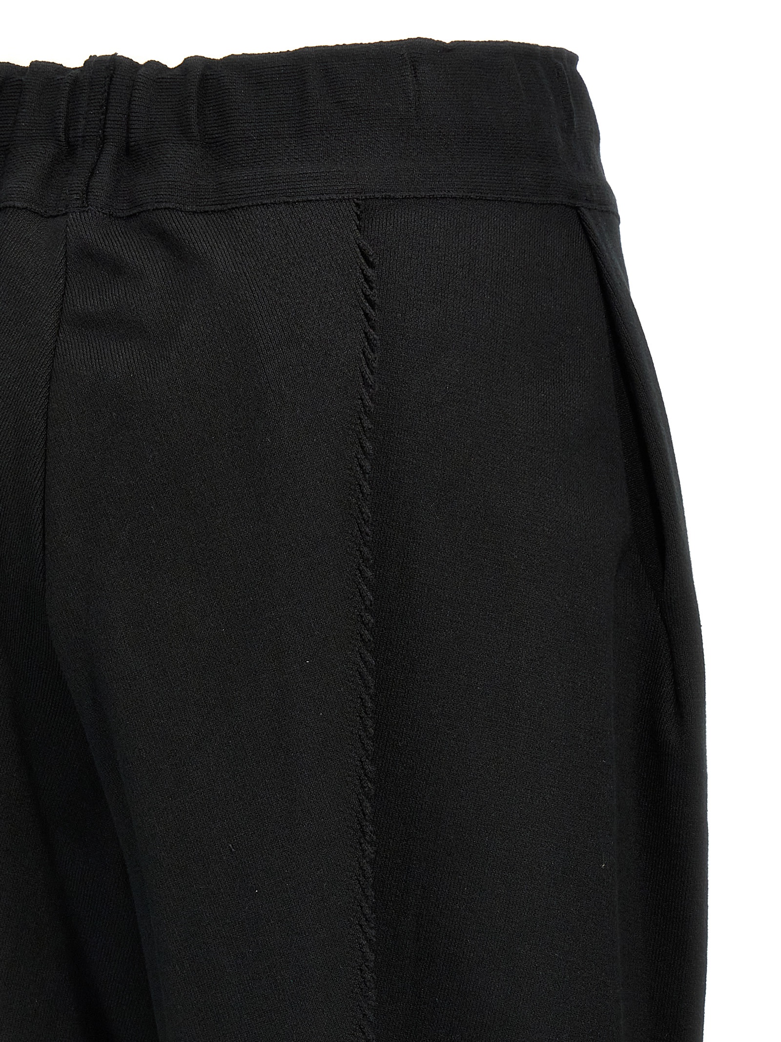 ‘champagne’ stretch cotton blend pants, Fringed front and back pleats, Balloon leg, Elastic waistband, Pockets, Raw cut hem. Size and Fit – true to size fit