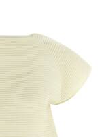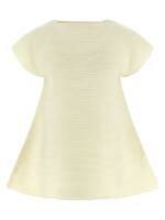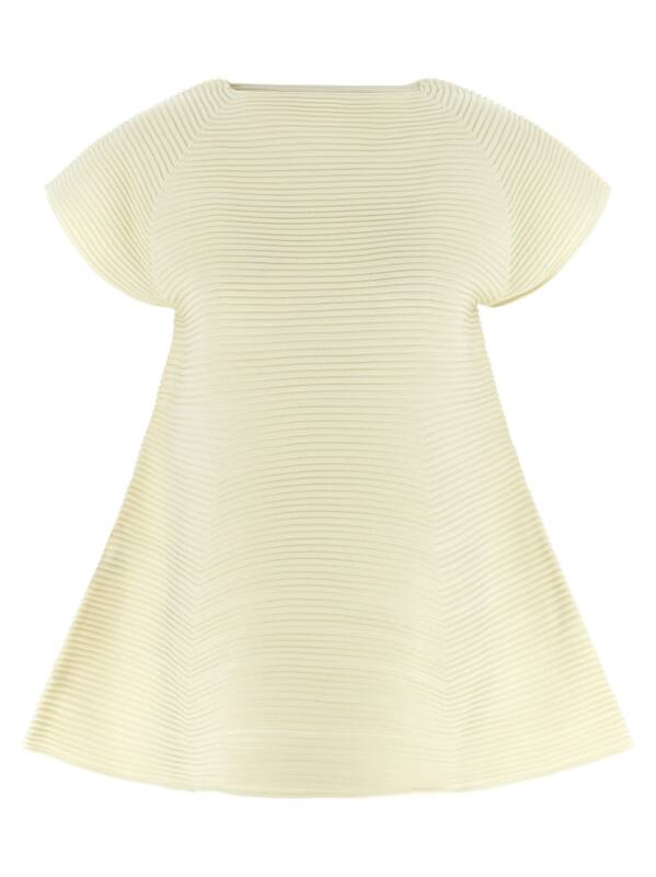 Mini ‘corrugated knit’ dress in ribbed fabric, Hourglass silhouette with very flared skirt, Crew neck, Short sleeves. Size and Fit – true to size fit