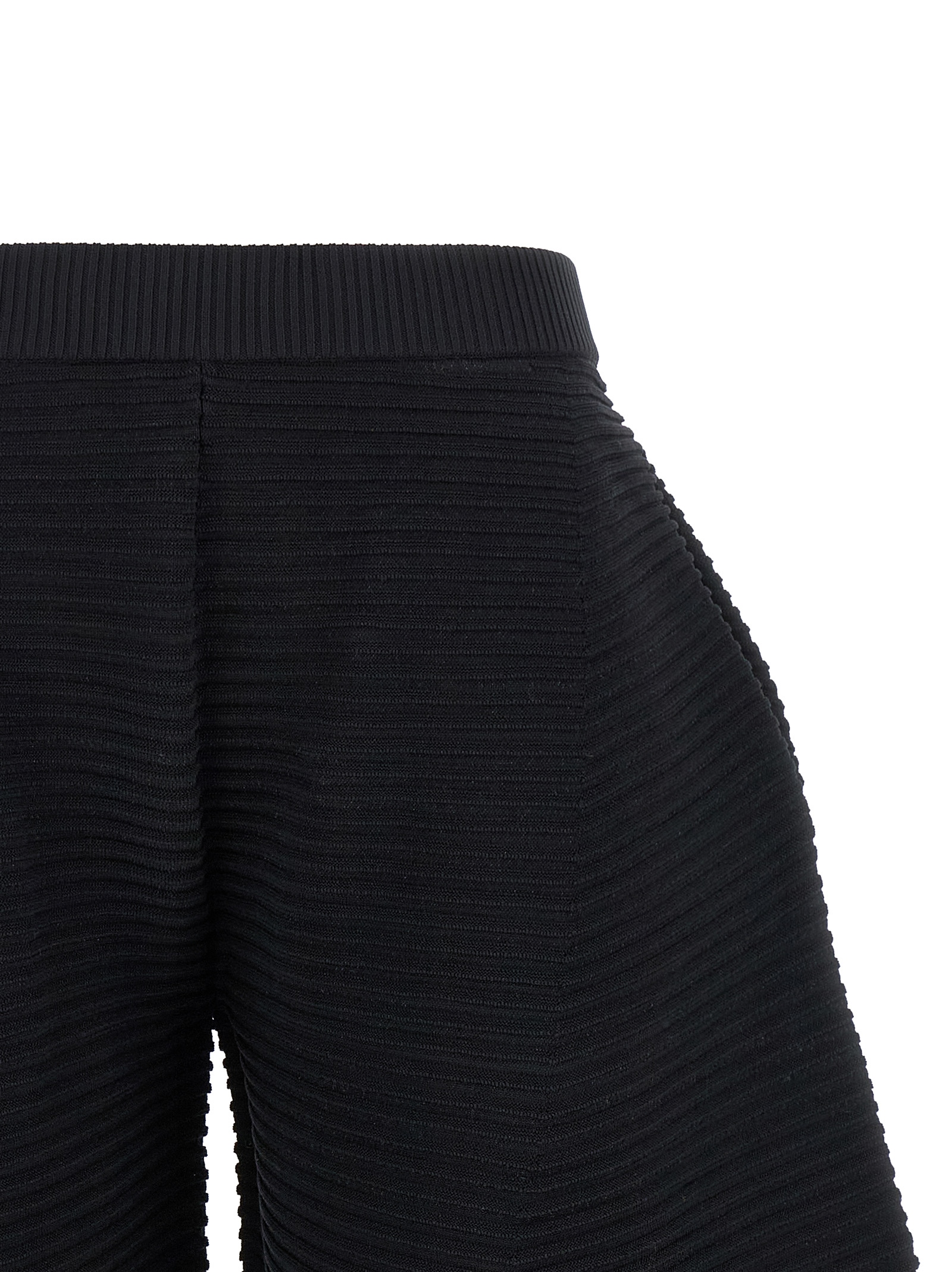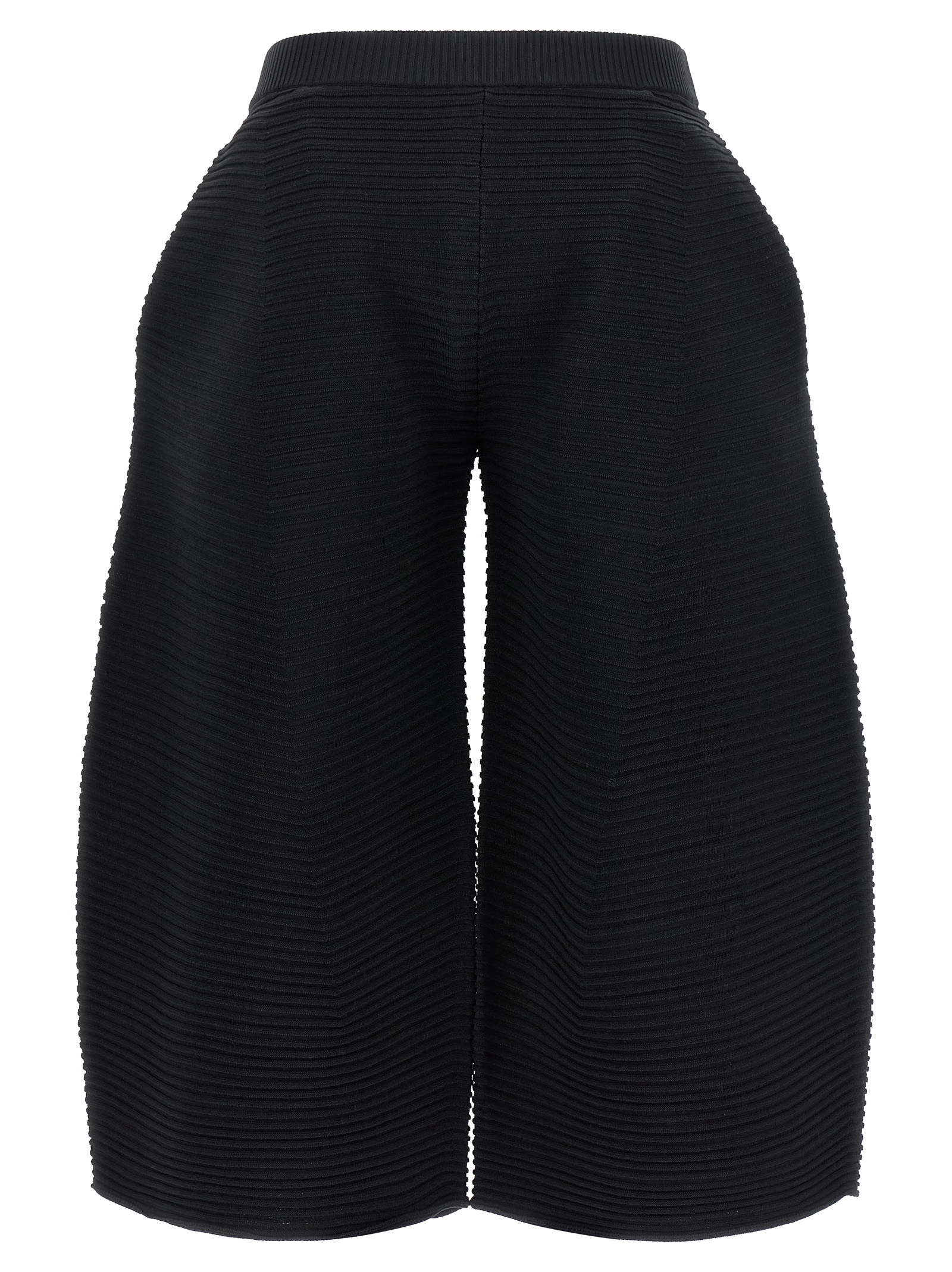‘corrugated knit’ cropped pants in ribbed fabric with wide curved leg, Elastic waistband,Side pockets.Ckets.