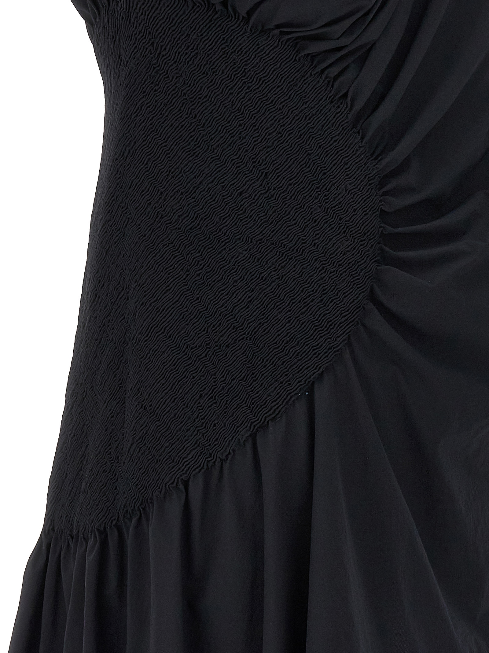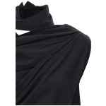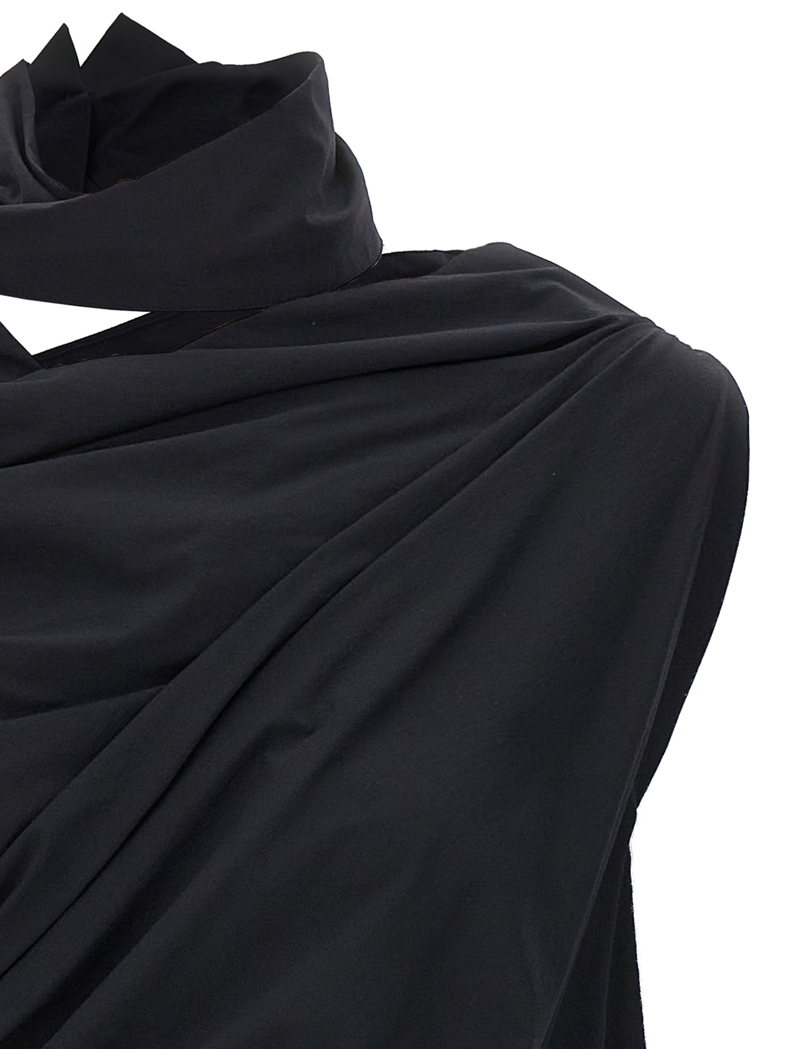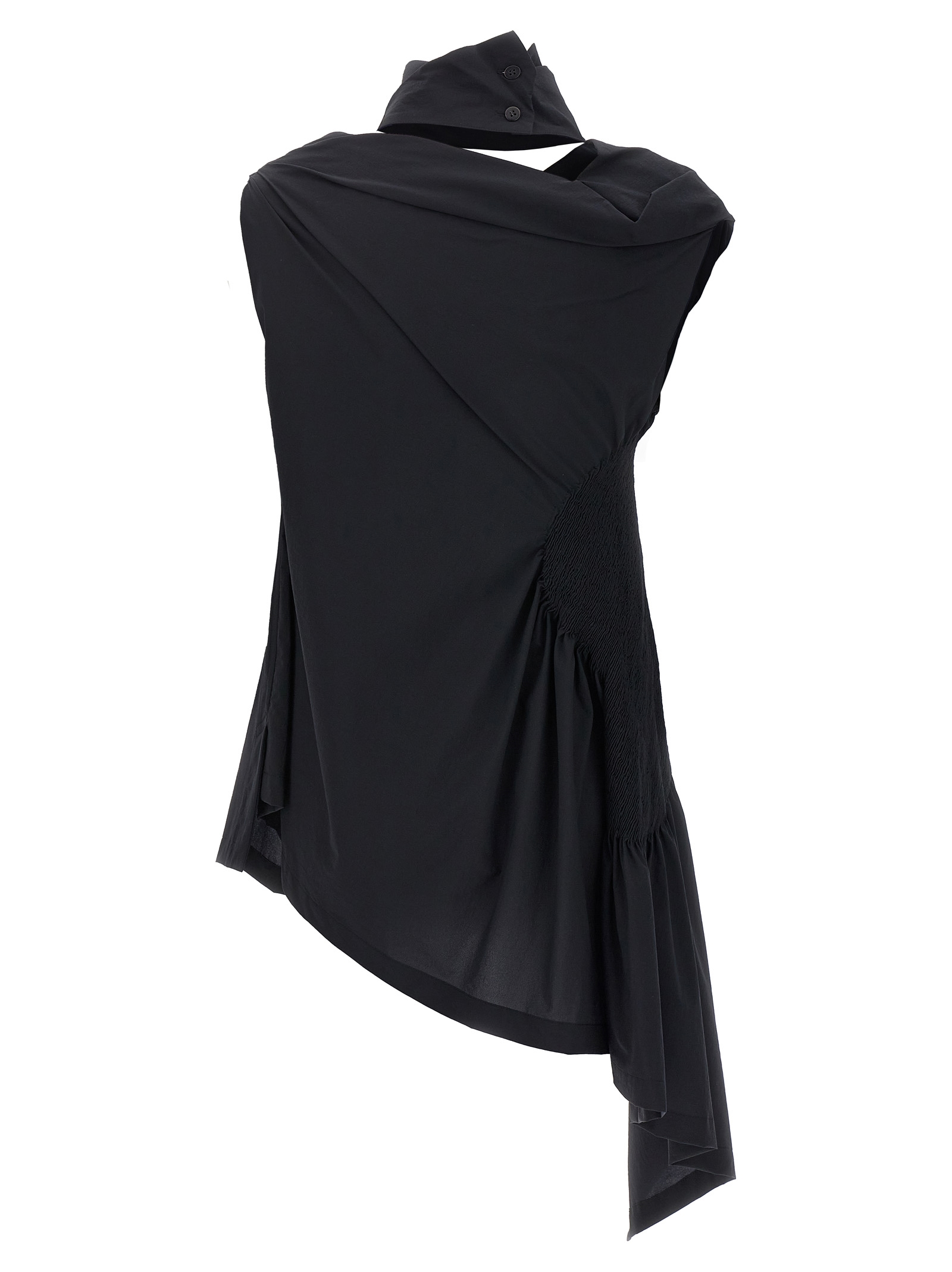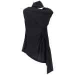 ‘eye of the bean’ stretch tech fabric asymmetrical top with side ruched detail and draped neckline. Size and Fit – True to size fit