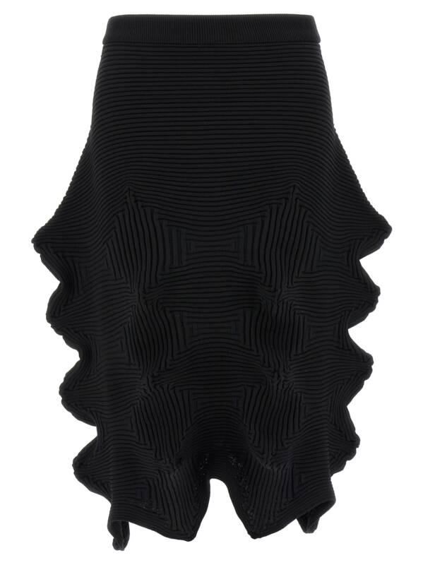 ‘linkage’ knitted skirt with ribbed elastic weave structure, Wide model with elastic waistband. Size and Fit – True to size fit