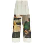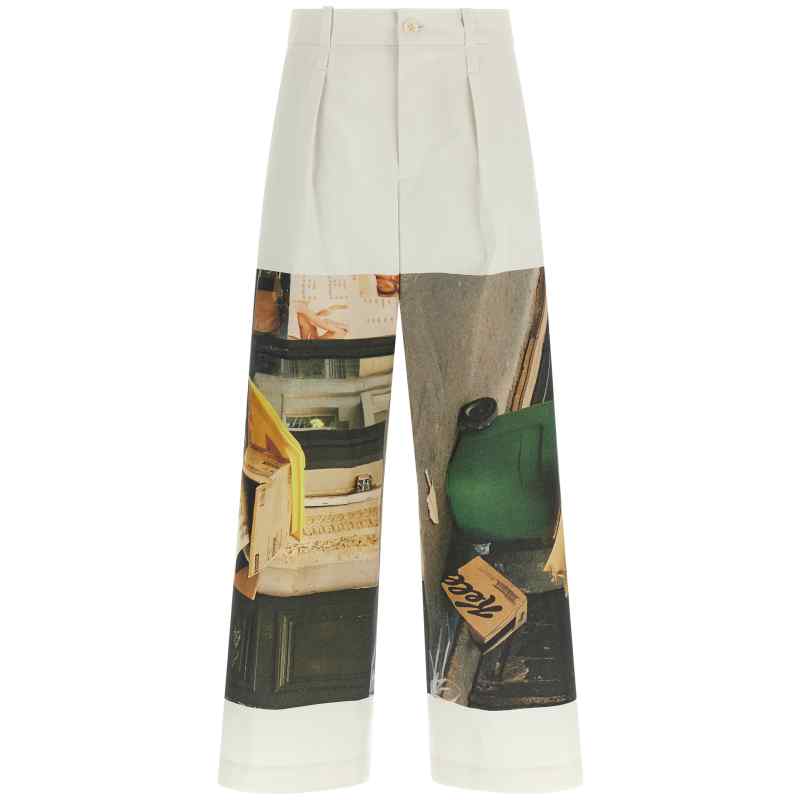 ‘street view’ cotton blend pants, Wide leg style with front print, Front button and zip closure, Belt loops at the waist, Pleats, Side pockets. Size and Fit – True to size fit