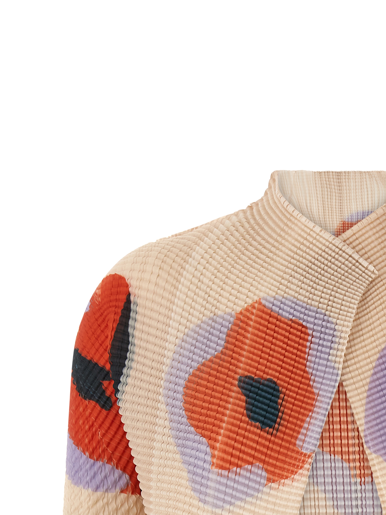 ‘verve pleats top’ cardigan in pleated fabric with all-over print, Front opening, Long sleeves.