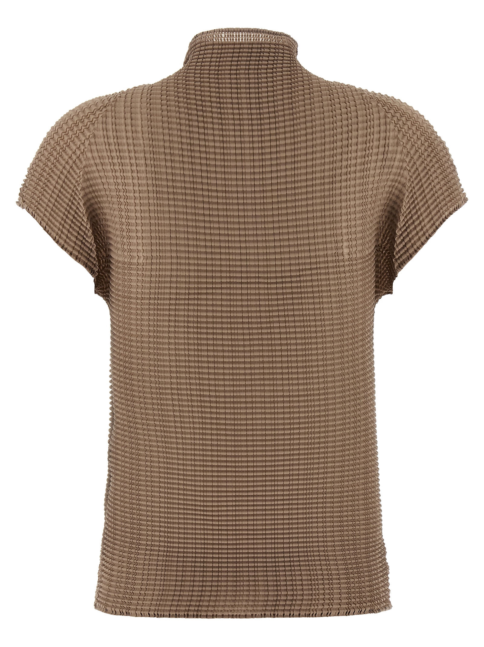 ‘wooly pleats-66’ pleated t-shirt with high neck, Short sleeves._x000d_